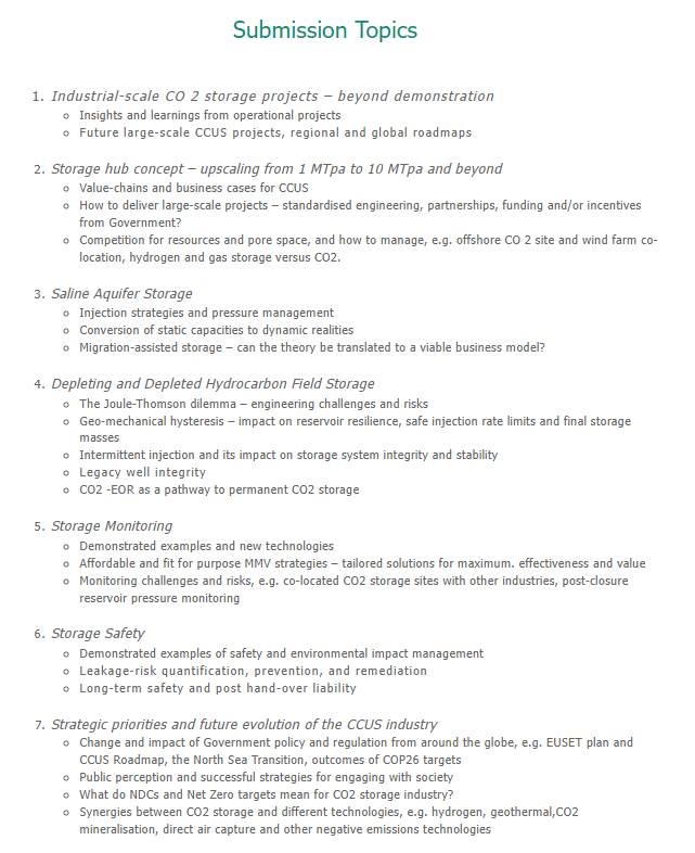 The workshop aims to examine the learnings gained from the global portfolio of large-scale CCUS projects and how storage-hub concepts may help deliver the massive increases in future CO2 storage volumes. Key technological advances made in areas such as saline aquifer and depleted hydrocarbonfield storage will be reviewed and new developments in monitoring and CO2 utilisation will be presented. The workshop will also examine the benefits and challenges posed by integrating CCUS into the energy and industry ecospheres to help deliver the emissions reductions necessary to reach UNFCC climate goals.